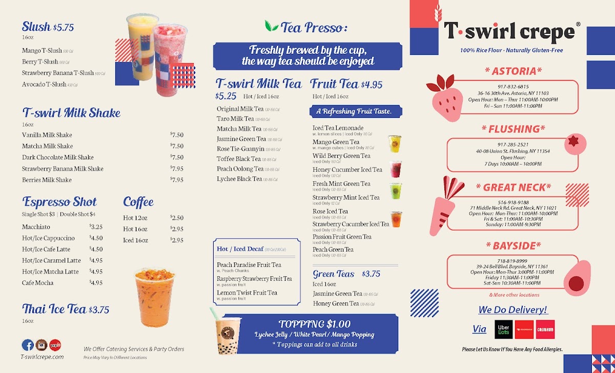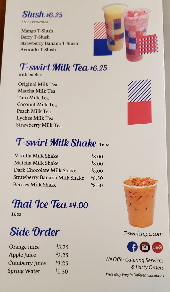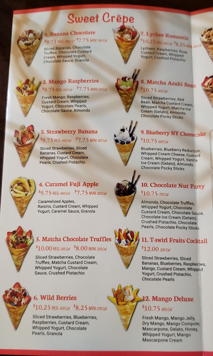 Welcome to T-swirl Crepe - White Plains, a haven for crepe enthusiasts located at 151 Mamaroneck Ave. This popular eatery specializes in both sweet and savory Japanese-style crepes that promise delightful flavor combinations and fresh ingredients.